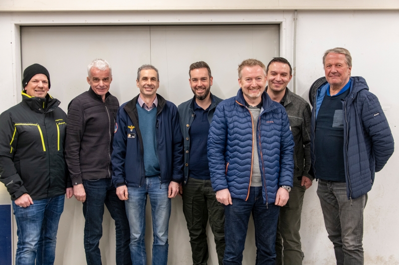 Johannes Achleitner (Sportreferent und Werkstattleiter), Christoph Hackl (Kassier), Pichler Franz (Schriftführer), Stephan Fammler (Obmann), Harald Reisinger (Ausbildungsleiter Flugschule), Georg Vogelhuber (Obmann Stv.), Franz Zehetbauer (Betriebsleiter)